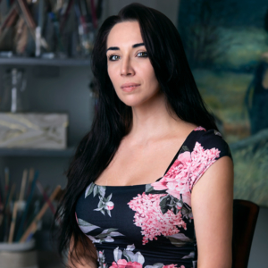 From existential philosophers to romantic painters, I have a strong affinity for themes of the individual’s potential for greatness or self-destruction; their choices; their seeking or avoiding of knowledge, the realities they create for themselves. In my art, I hope to capture a feeling of elegance or beauty, tangled with the dangers and fears. I often view the world as a dangerous grandeur, a perilous journey for the psyche, a beautiful ocean that both awes and drowns – but also, I see hope in the figures in my paintings. These are powerful beings who can overcome, rise stronger, create new realities – or allow themselves to be destroyed. I hope that by exploring these themes in my work, it stirs others to explore these questions in their own choices and lives.